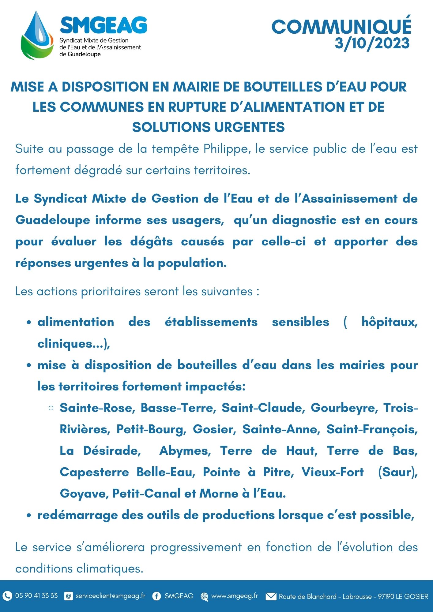 Communiqué du 3 octobre 2023 : Communiqué suite au passage de la tempête Philippe