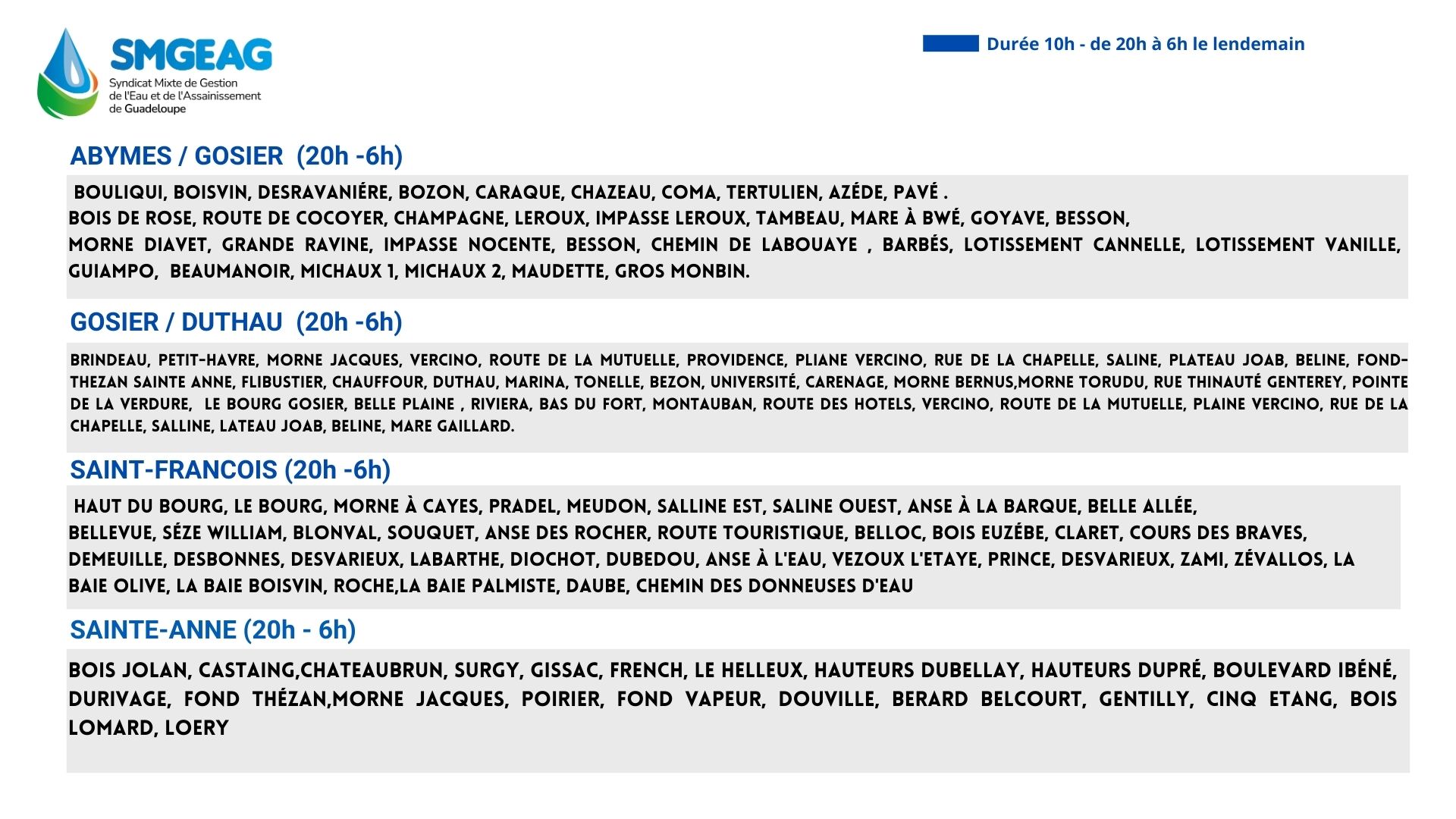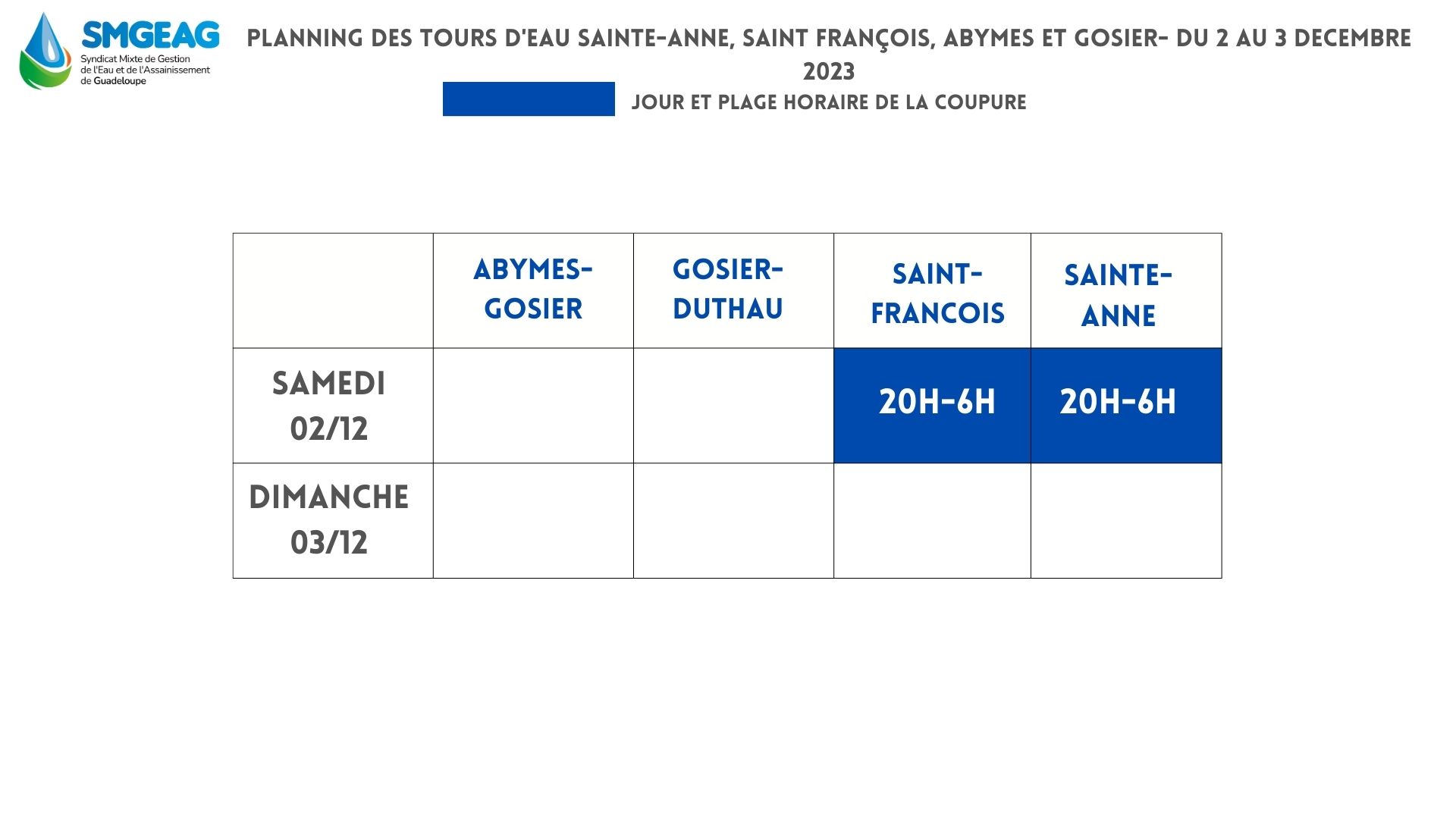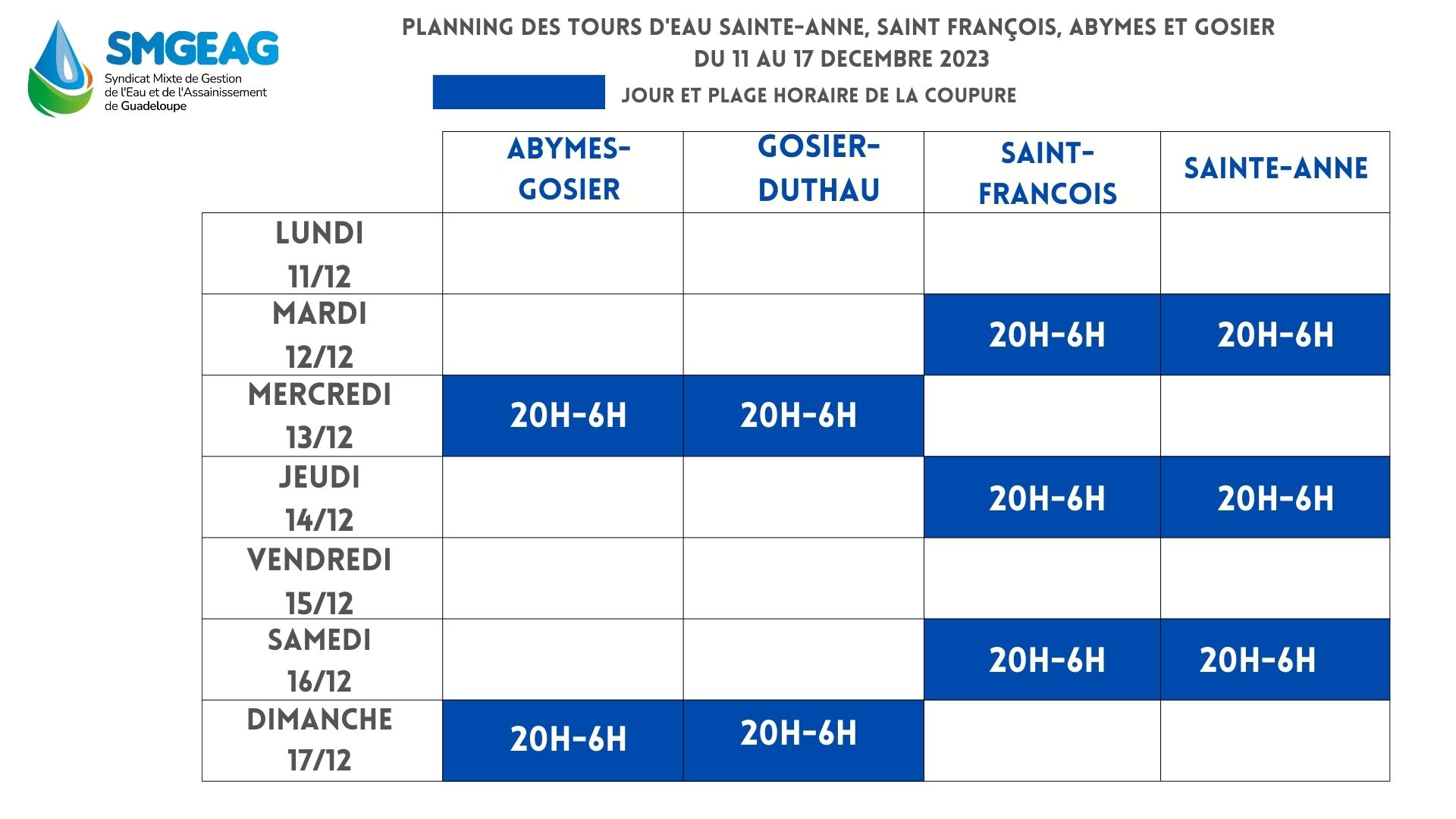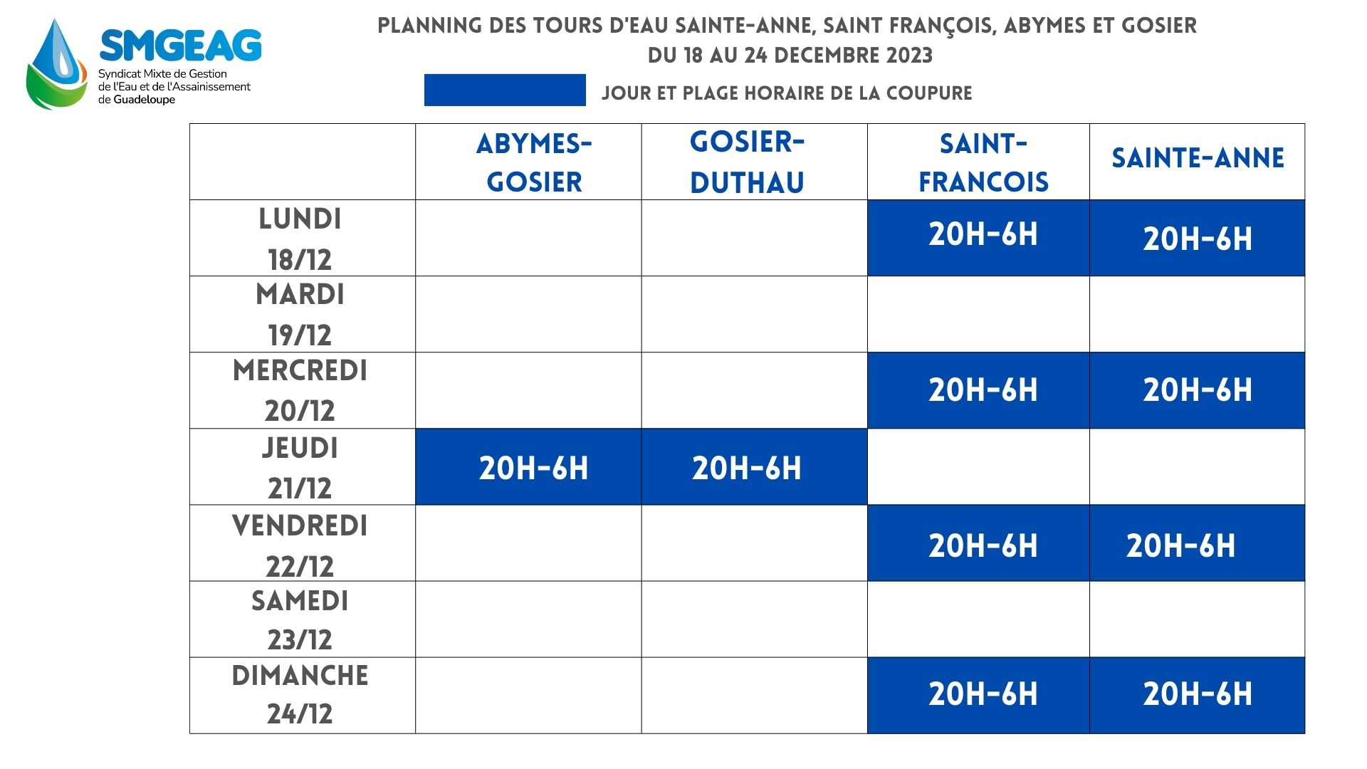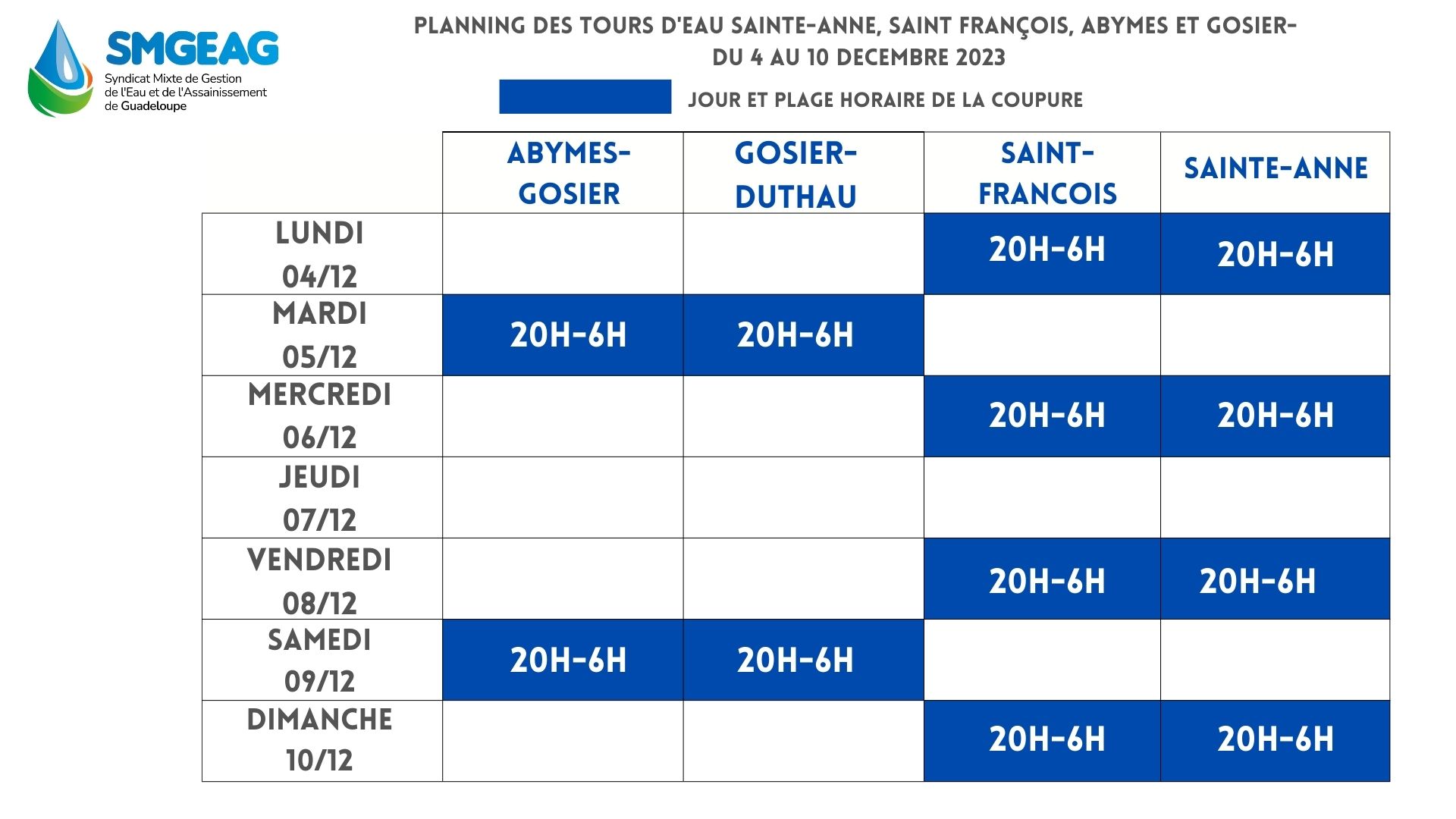 Retrouvez ci-après les plannings de tours d’eau pour le territoires Basse-Terre et Grande-Terre jusqu’au 31 décembre.
