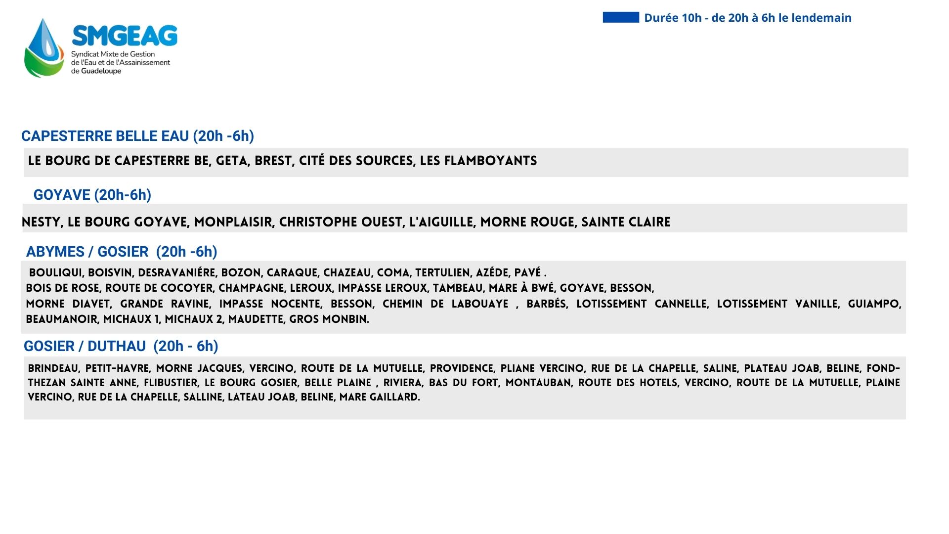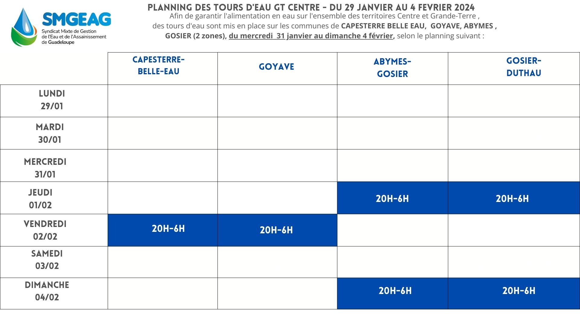 Planning des tours d’eau territoire Centre jusqu’au 4 février 2024