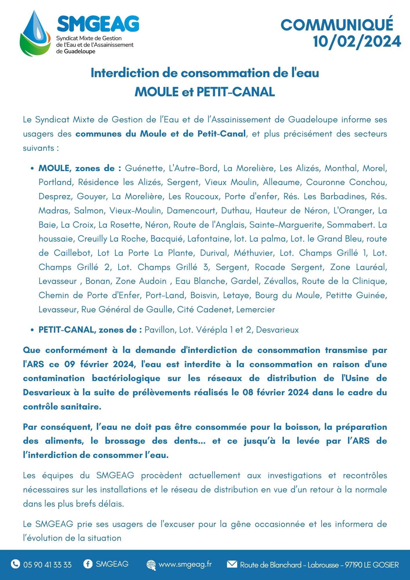 Communiqué Le Moule et Petit-Canal