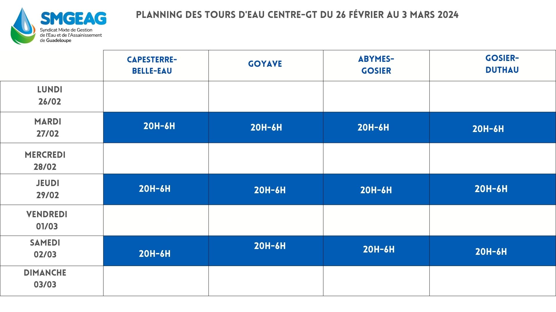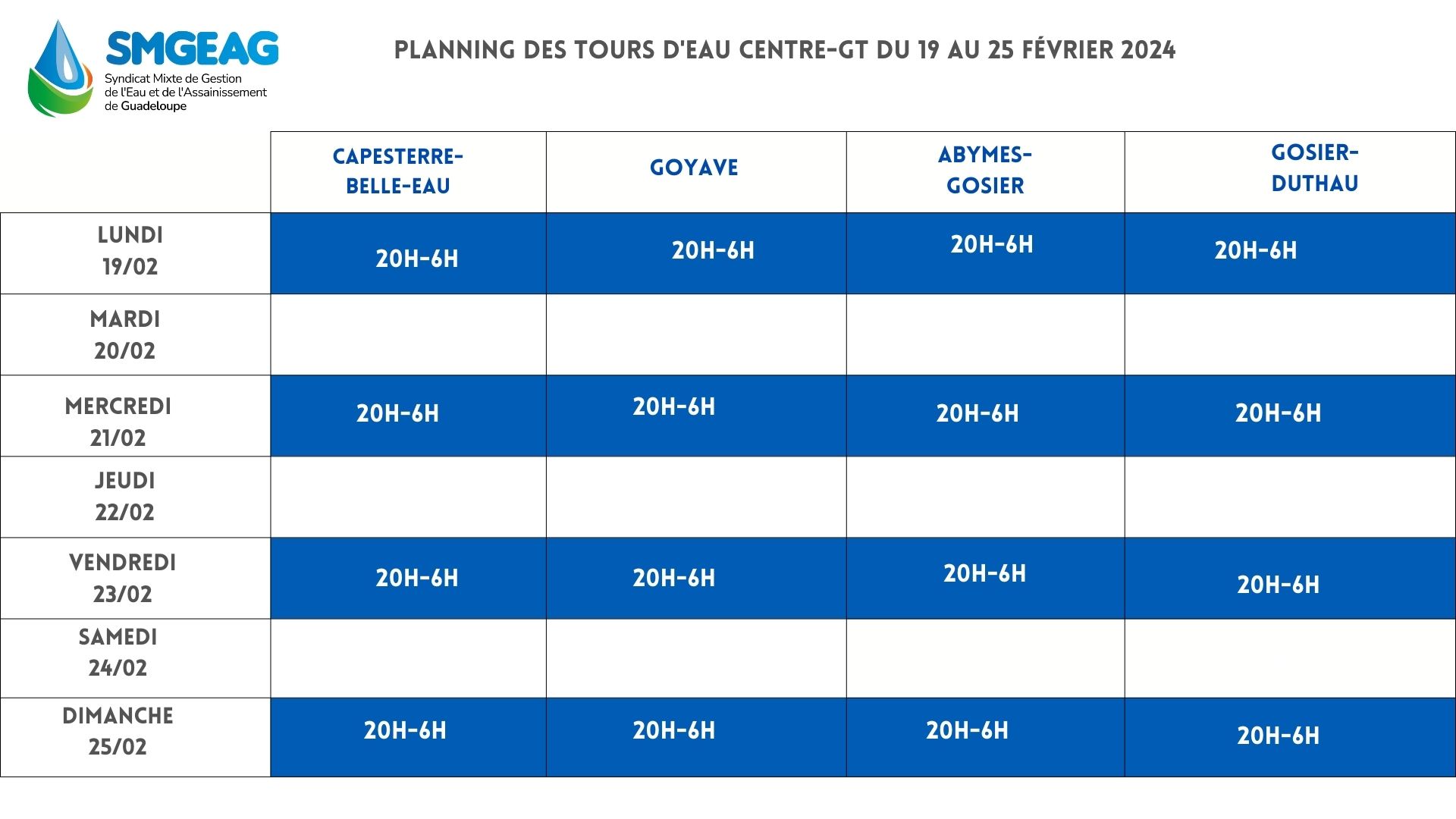 Planning des tours d’eau territoire Centre-GT du 19022024 au 03032024