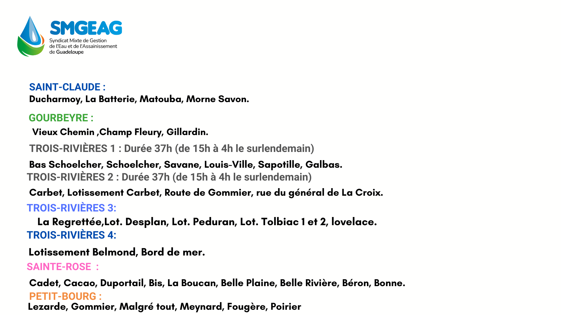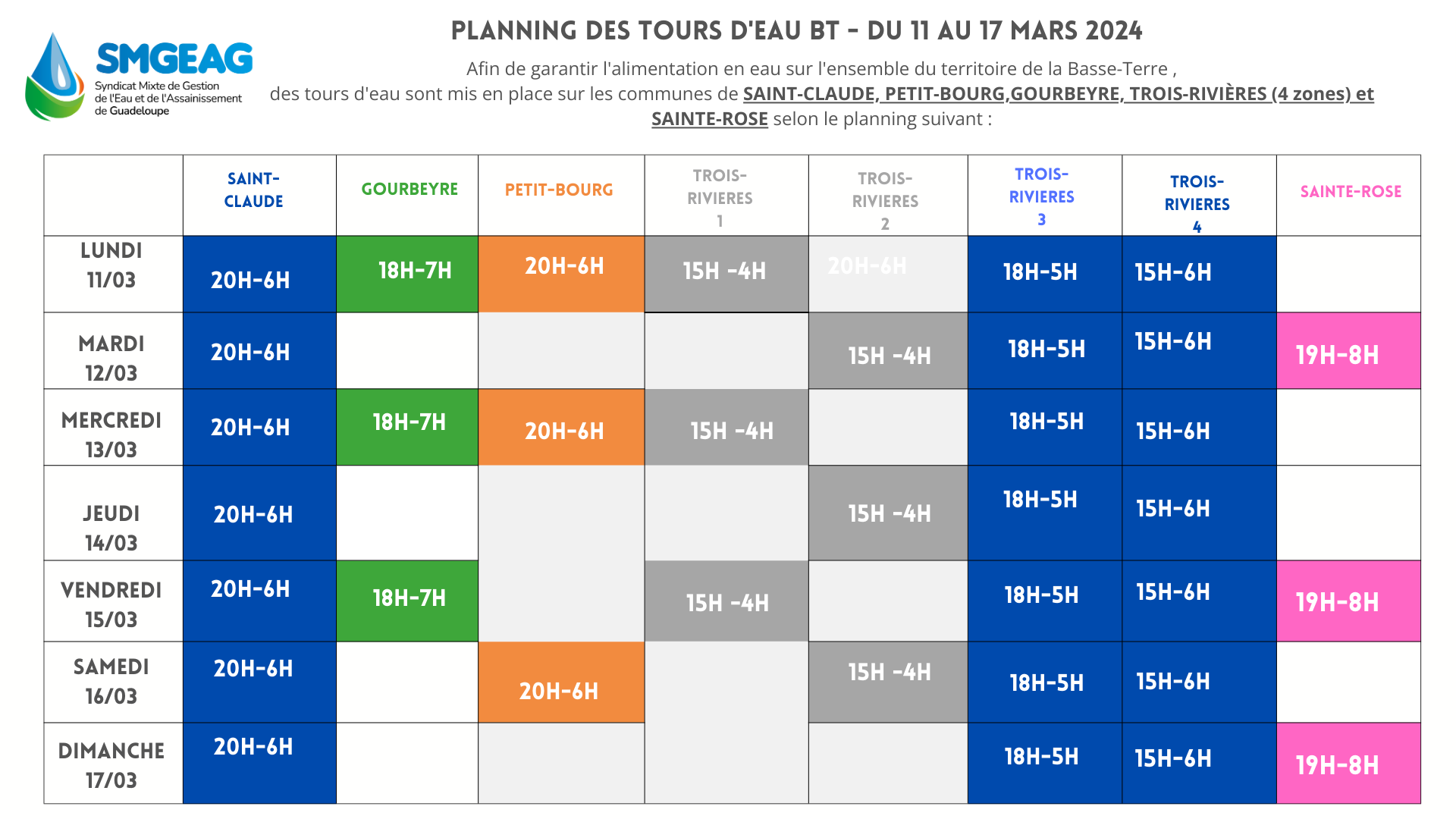 Planning des tours d’eau sur la Basse-Terre – Mars