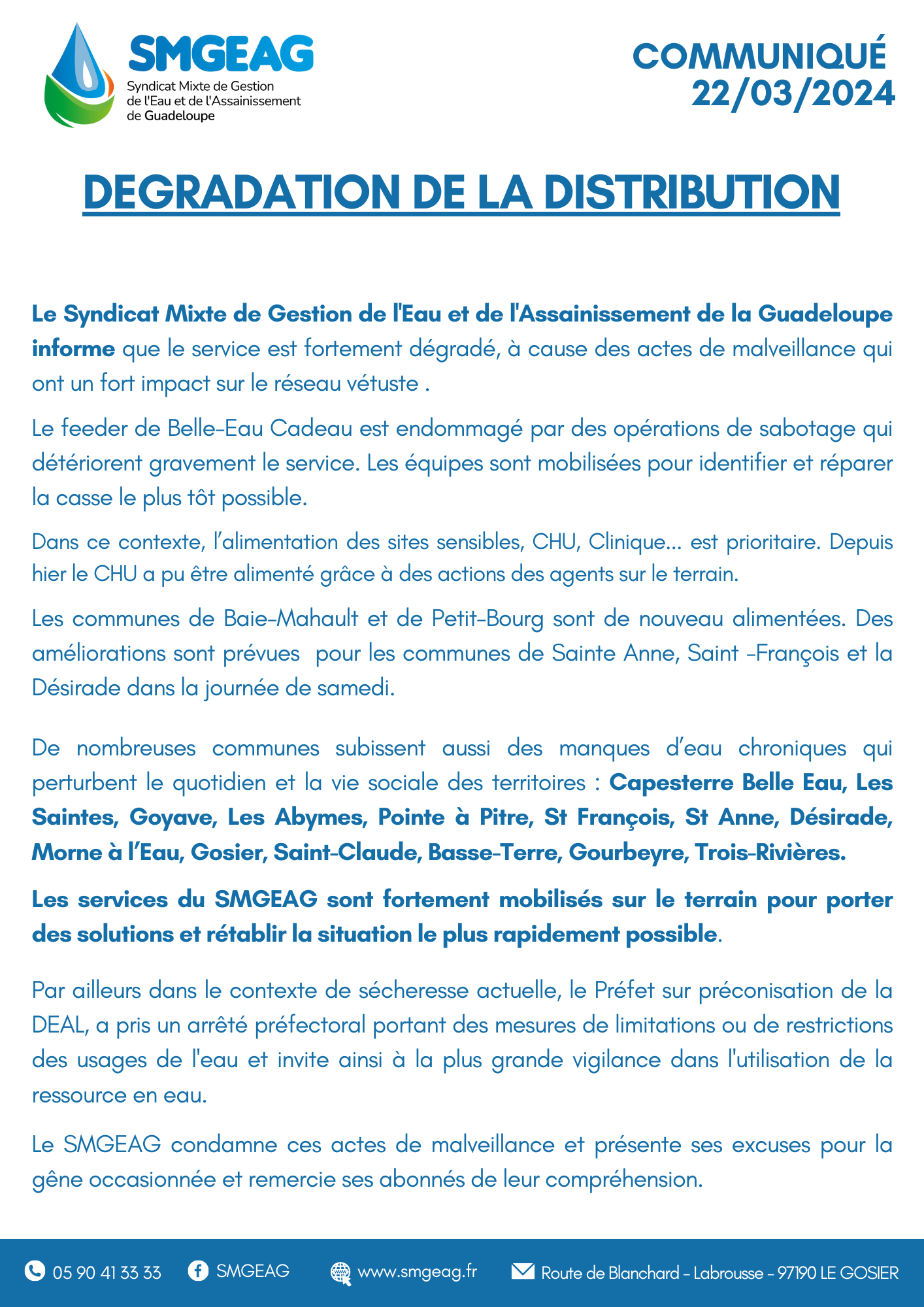 Communiqué : DEGRADATION DE LA DISTRIBUTION