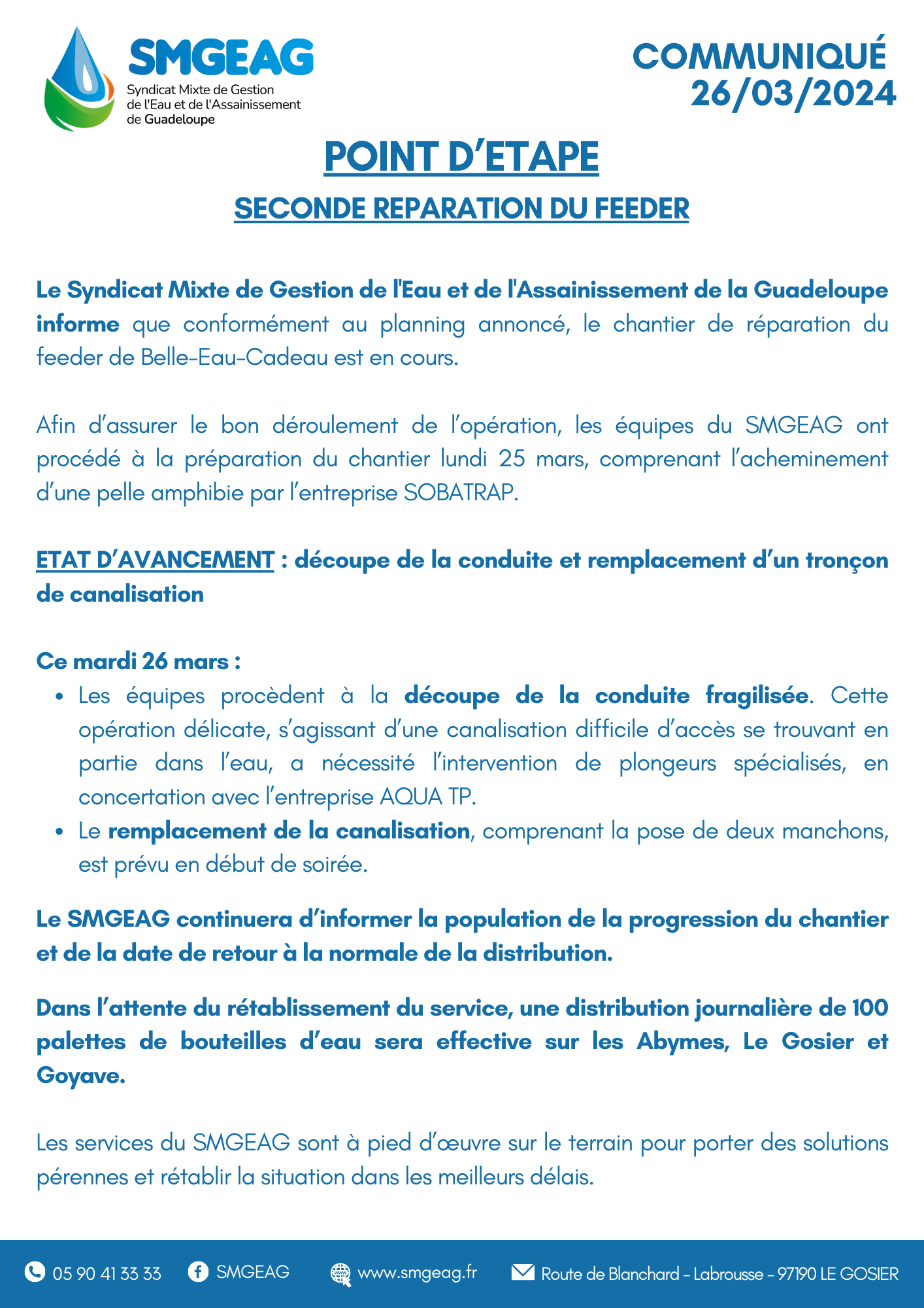 Communiqué : POINT D’ETAPE SECONDE REPARATION DU FEEDER