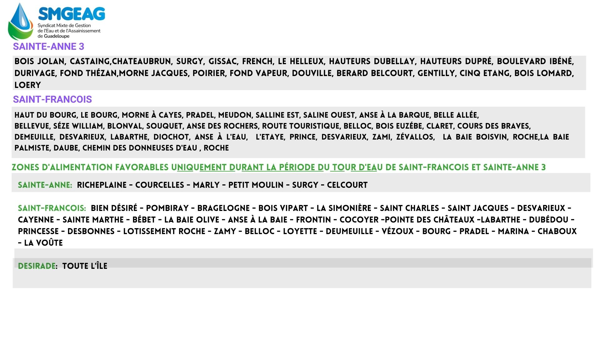 Planning des tours d’eau Sainte-Anne et Saint-François jusqu’au 5 mai