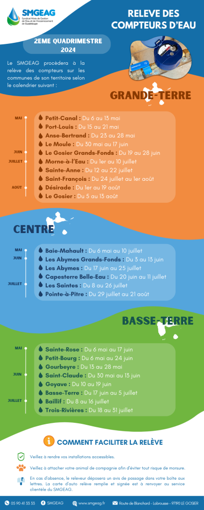 Au cours du 2ème quadrimestre 2024 (mois de mai à août), le SMGEAG procèdera à la relève des compteurs sur son territoire.