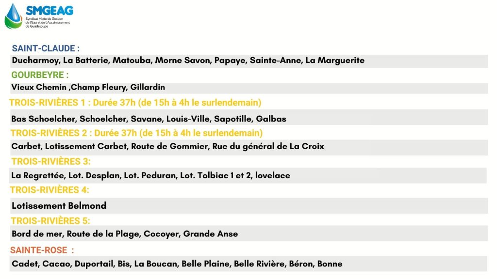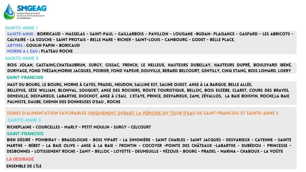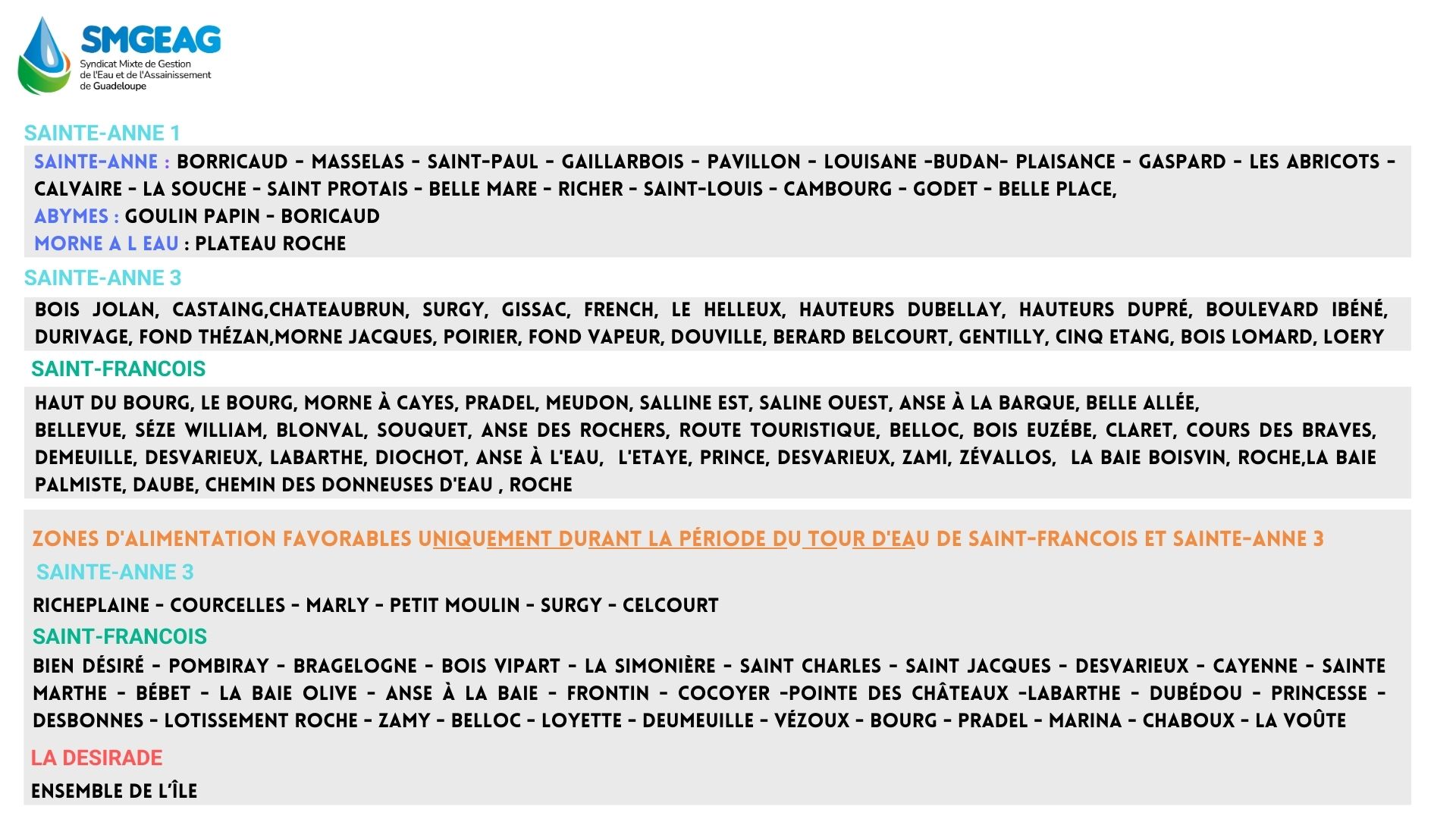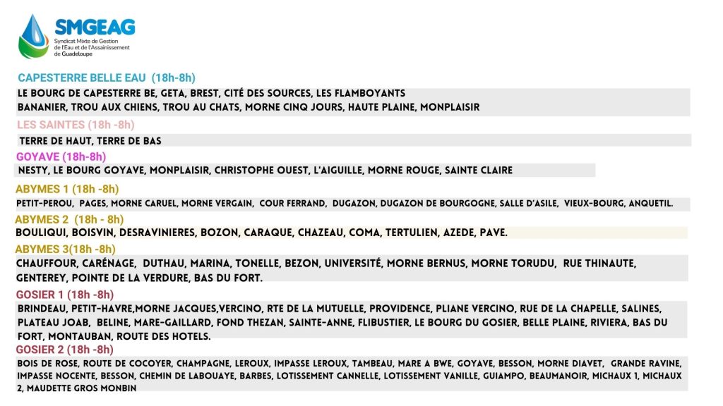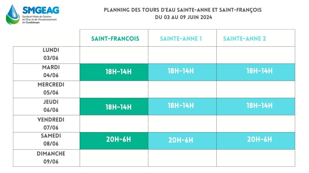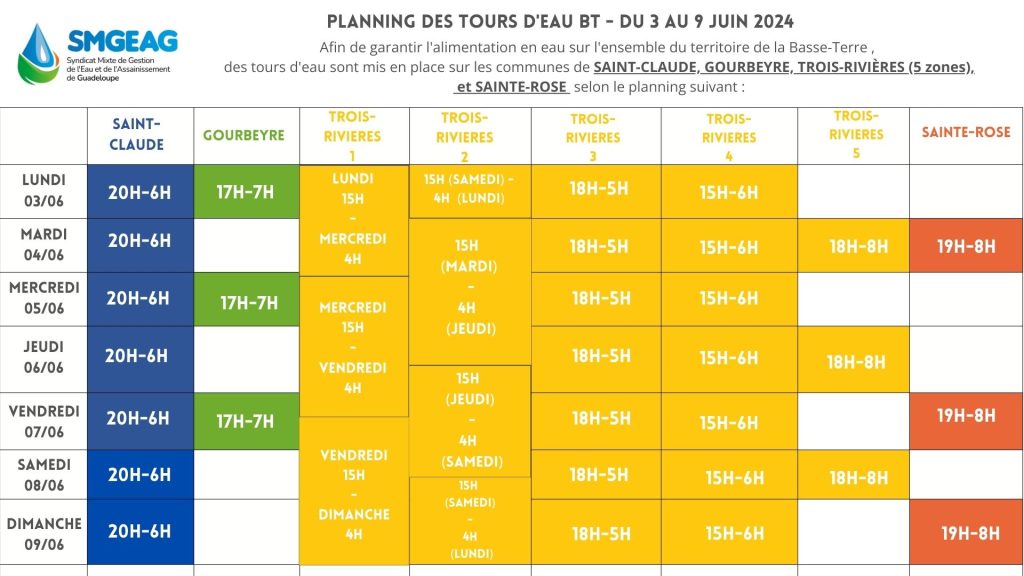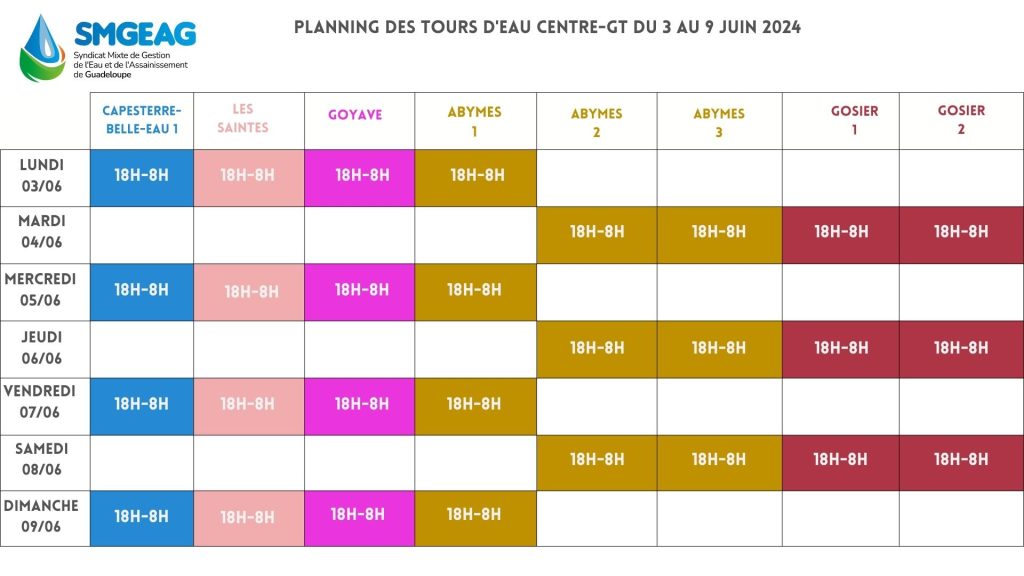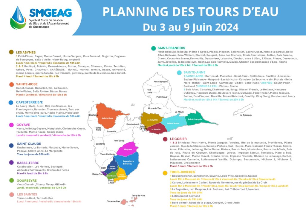 Planning des tours d’eau du 3 au 9 juin 2024 : Territoires Centre, Grande-Terre et Basse-Terre