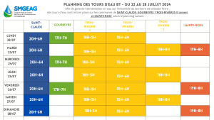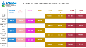 Planning des tours d’eau du 22 au 28 juillet