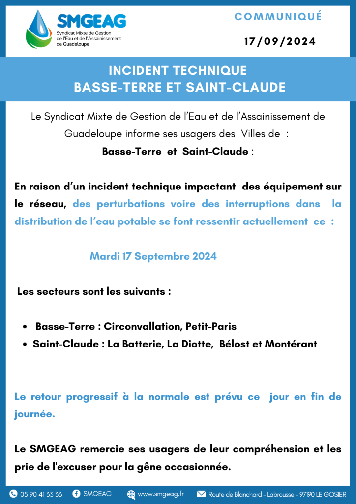 CP_17092024_Perturbation - INCIDENT TECHNIQUE BASSE-TERRE ET SAINT-CLAUDE