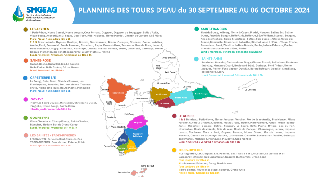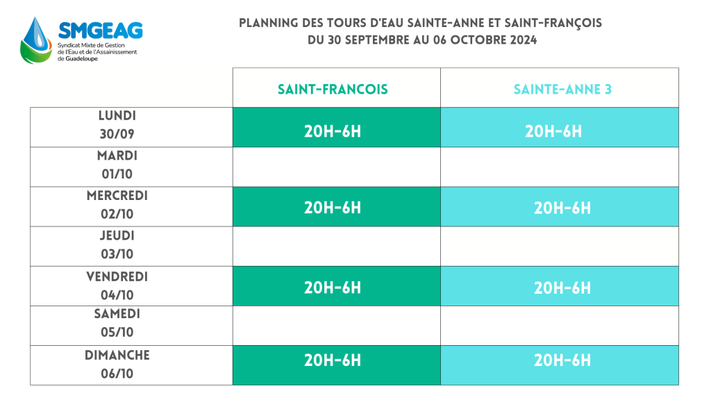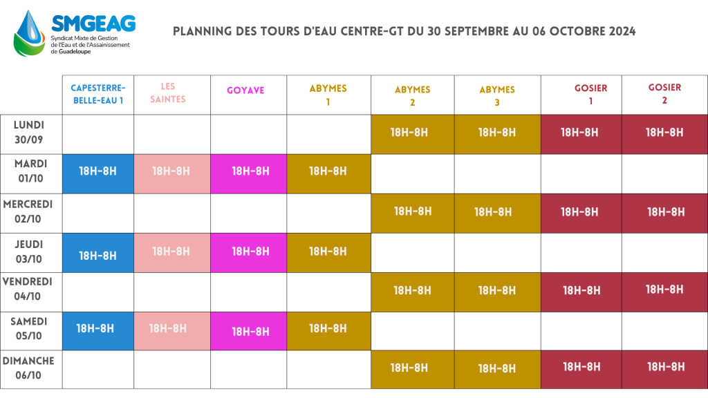Planning des tours d’eau du 30 Septembre au 6 Octobre 2024