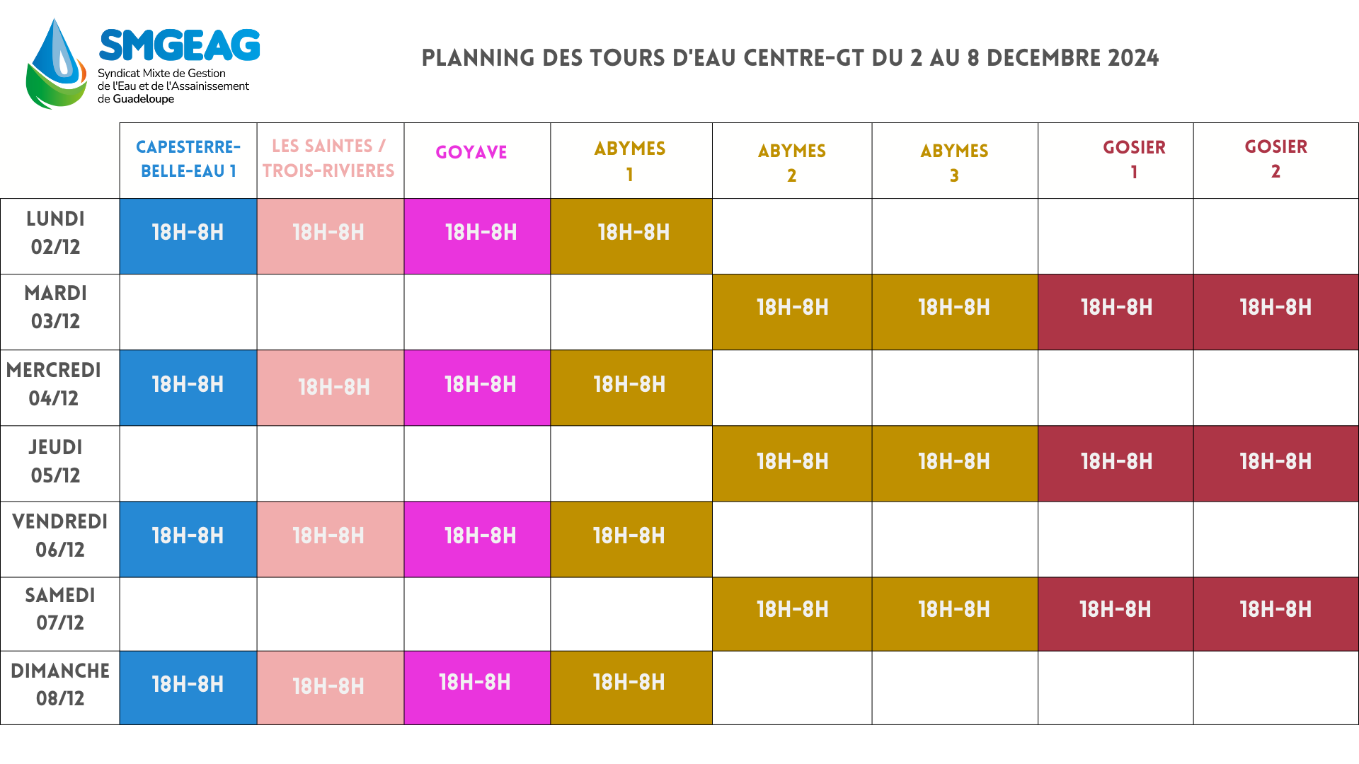 PLANNING DES TOURS D’EAU DU 2 AU 8 DECEMBRE 2024