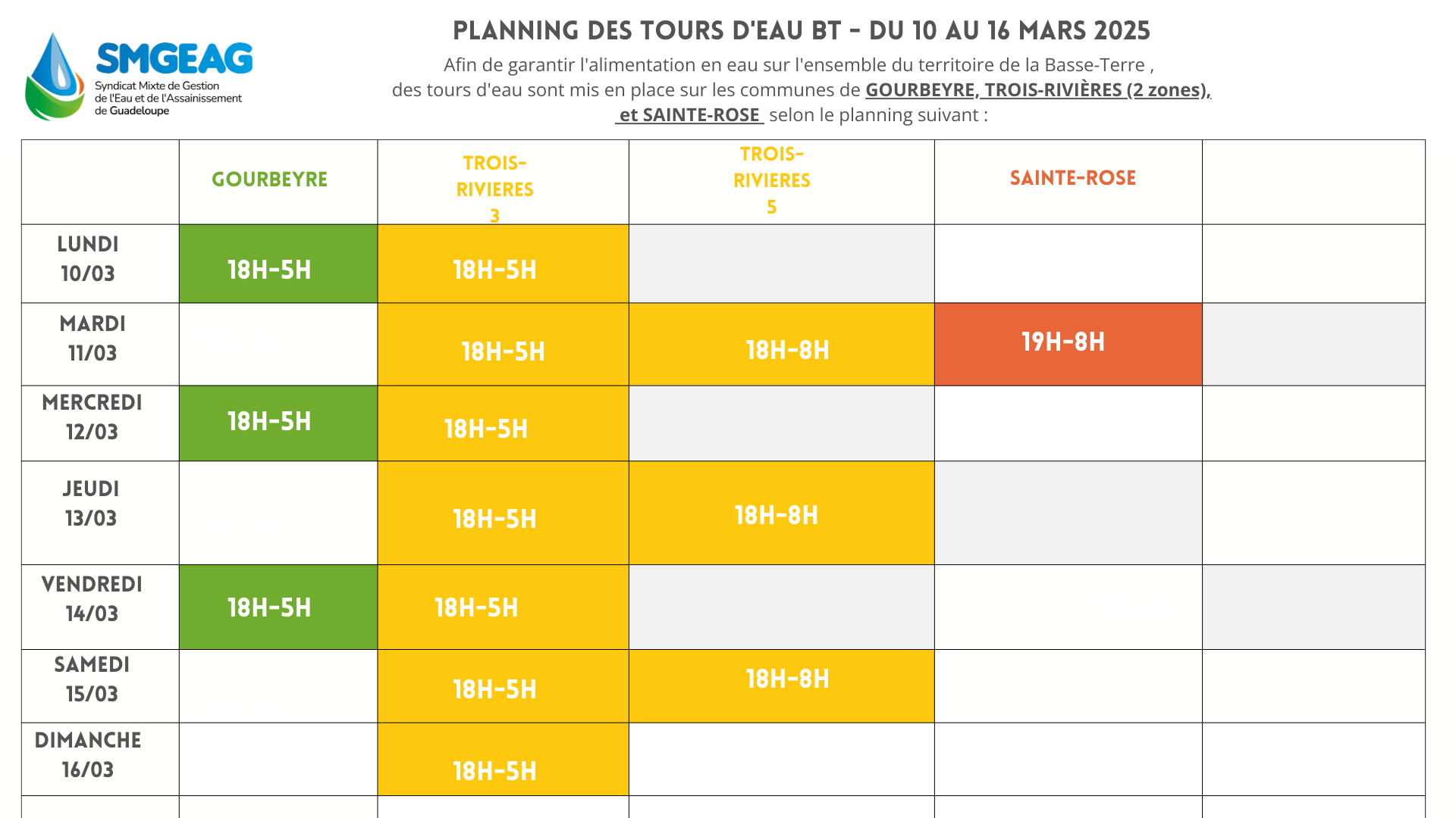 Planning des tours d’eau du 10 au 16 mars