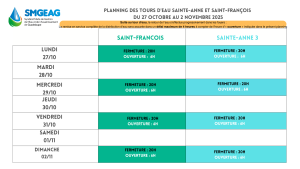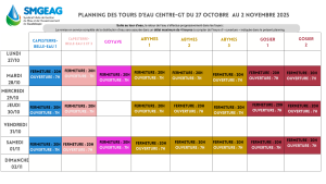 Planning des Tours d’Eau du 27 octobre au 2 novembre 2025