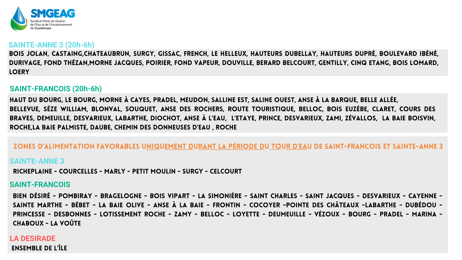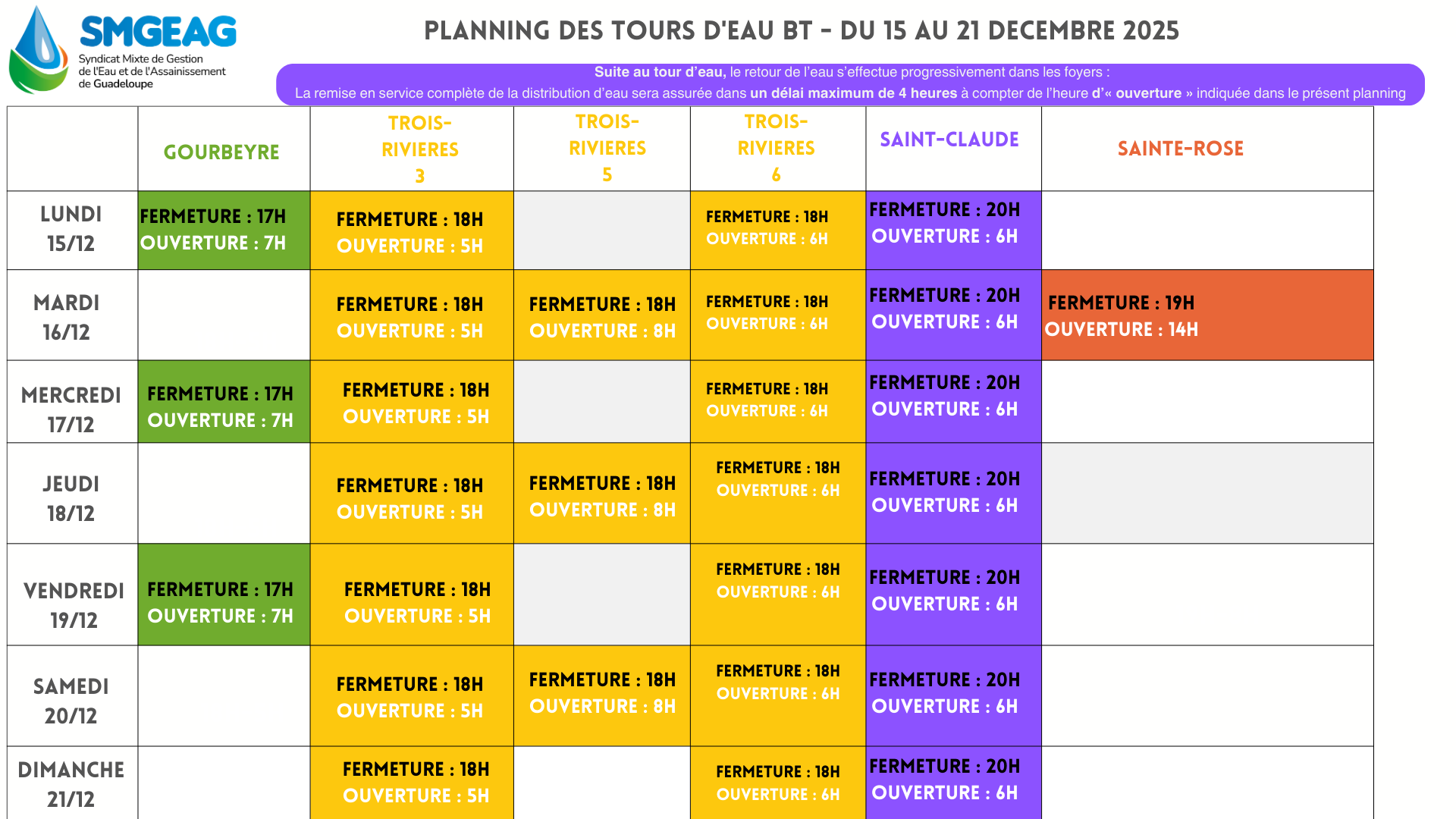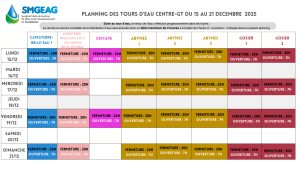 Planning des tours d’eau du 15 au 21 décembre 2025