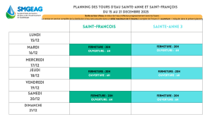 Planning des tours d’eau du 29 décembre au 4 janvier 2026