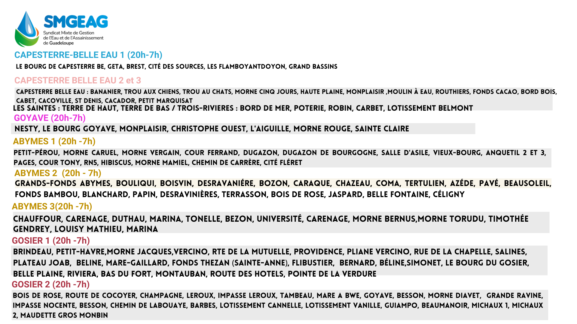 Planning des tours d’eau du 24 au 30 novembre 2025