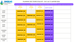 Planning des tours d’eau du 5 au 11 janvier 2026