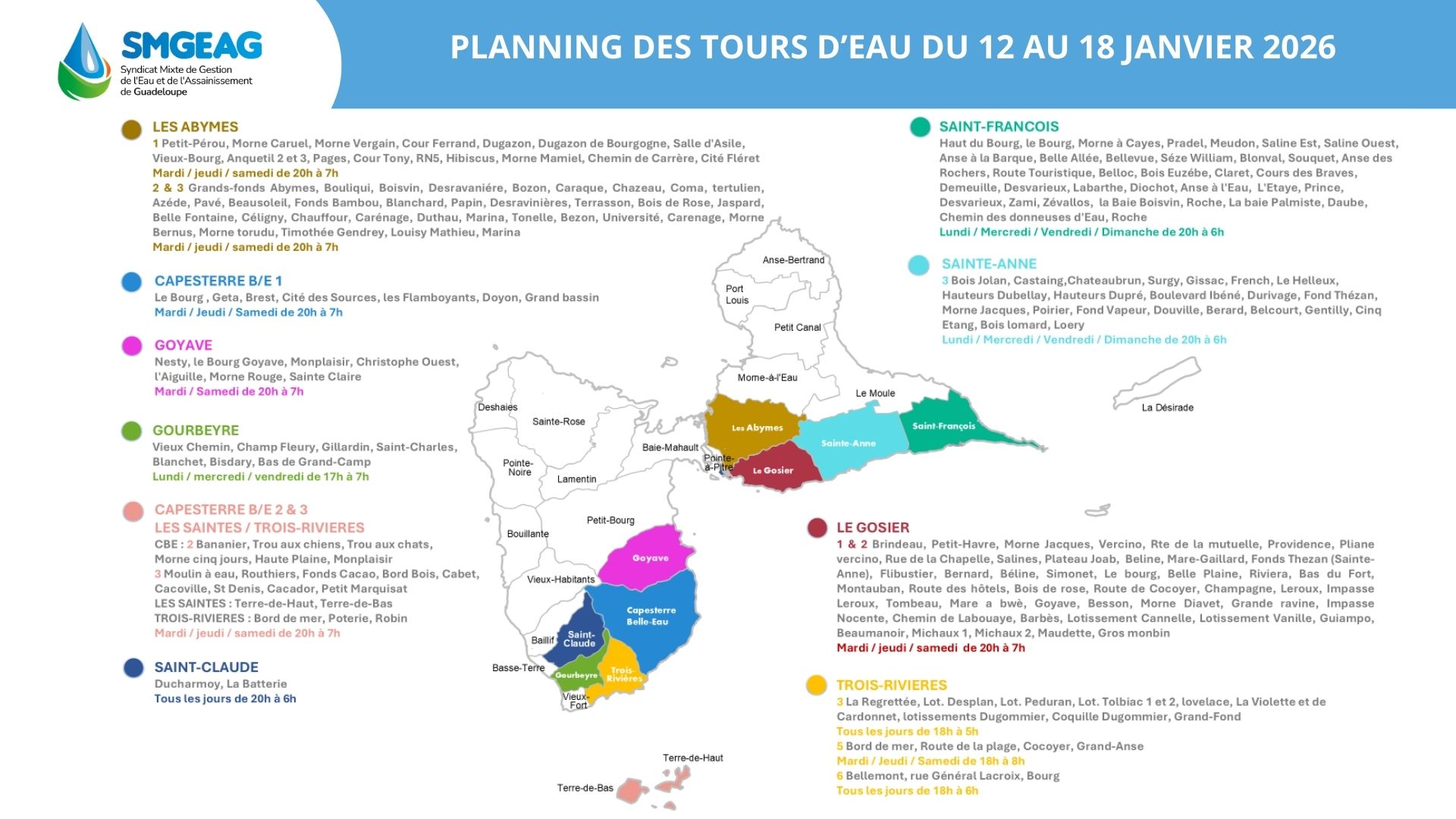 Planning des tours d’eau du 12 au 18 janvier 2026