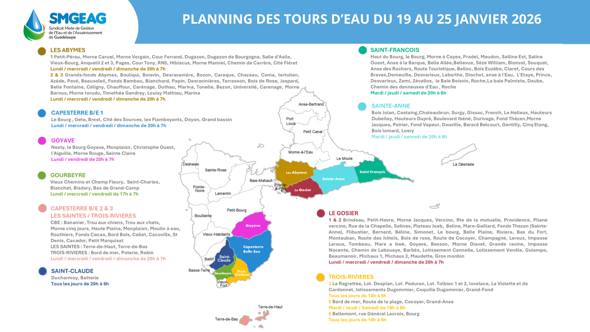 Planning des tours d’eau du 19 au 25 janvier 2026