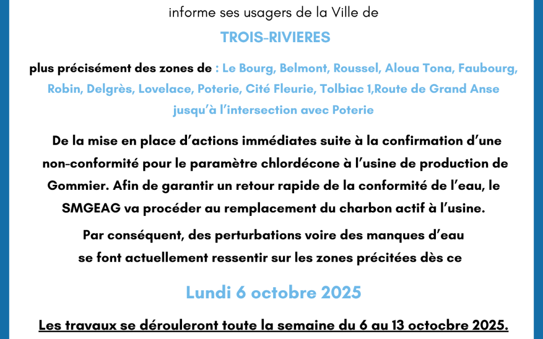 • Planning des Tours d’eau du 6 au 12 octobre 2025